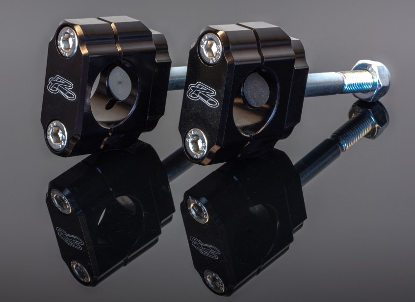 粗把轉接座Renthal 粗把轉接座是對應各原廠越野車由 22.2mm 把手轉接 28.6mm 粗把及雙層粗把所設計。夾鉗以 6086 T6 塊狀鋁合金,經精密的 CNC 切削處理後,再以陽極處理鍍上黑色。螺拴是以 817M40 鎳鉬鉻鋼,經過高精密度 CNC 切削,並強化及硬化到 W 強度等級。具有特殊設計,在嚴重轉倒時,能讓螺拴產生部分彎曲不直接斷裂避免危險的發生。主要對應原廠各車種把手座。